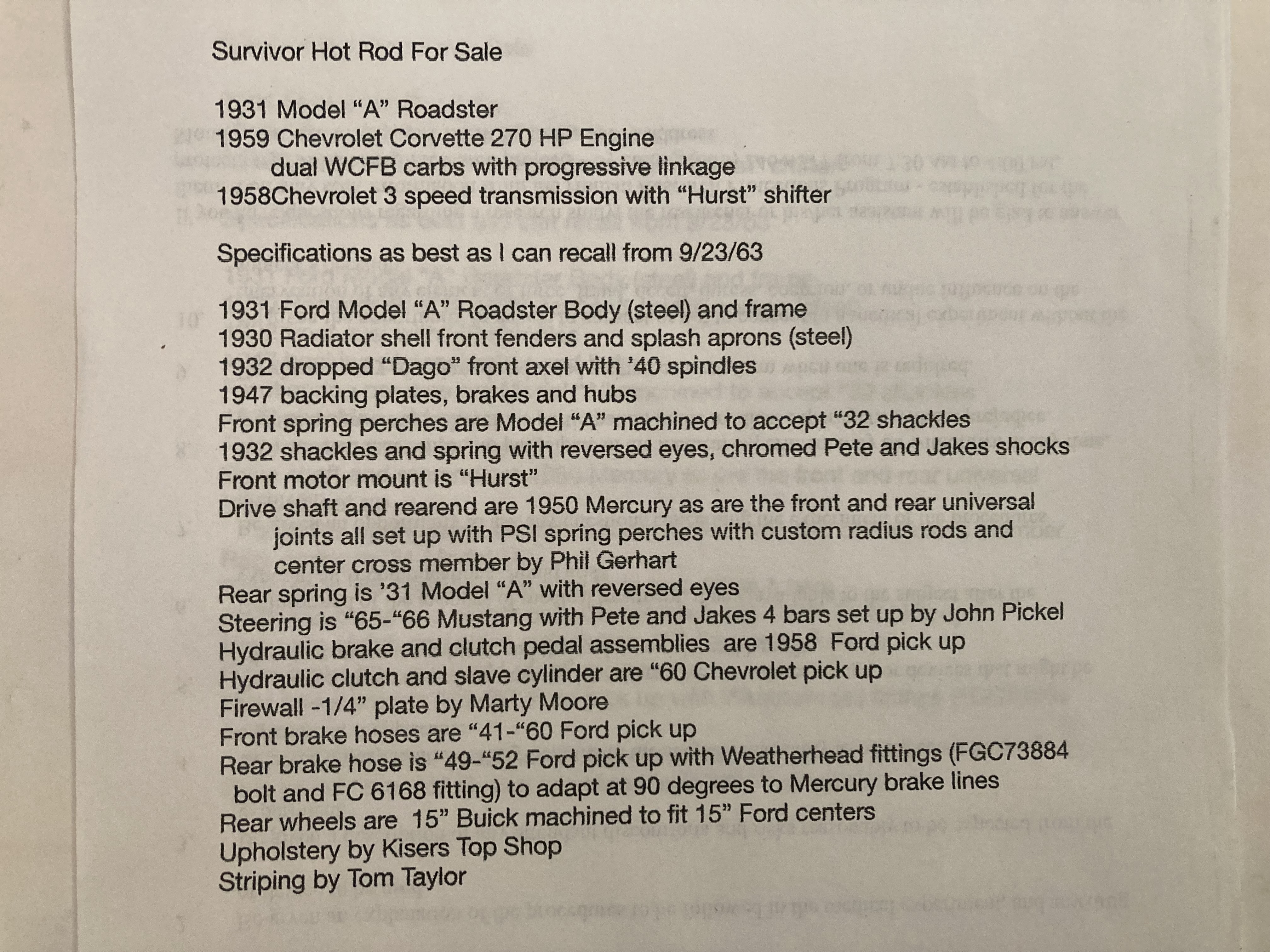 San Diego built roadster started in 1962 from a pile of parts. $24,000 --- 619 261 9243